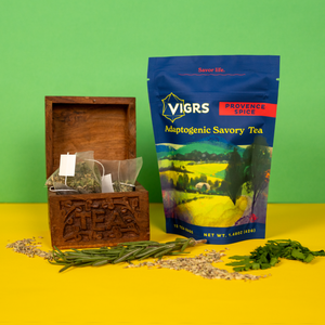 What does it mean to be vigorous? We think of words like strong, healthy, vibrant and full of good energy. Sounds like a great way to live! So we had to make a tea that tasted vigorous and made you feel that way too. Savory adaptogenic herbal tea. Zero caffeine but full of power. We created an adaptogen blend, added salt and then blended it with classic spice combinations to fire up both your taste buds and your chi. Life is meant to be savored.