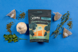 Bright and refreshing herbs work together with our adaptogenic tisane blend in this Greek-inspired delight to transport you to the seaside of Athens. Embrace a warm cup of Santorini Spice Vigrs to help satisfy and revitalize your mind and body*. For an invigorating flavor boost, add a teaspoon of avocado oil, olive oil, lemon, or even a pinch of salt.